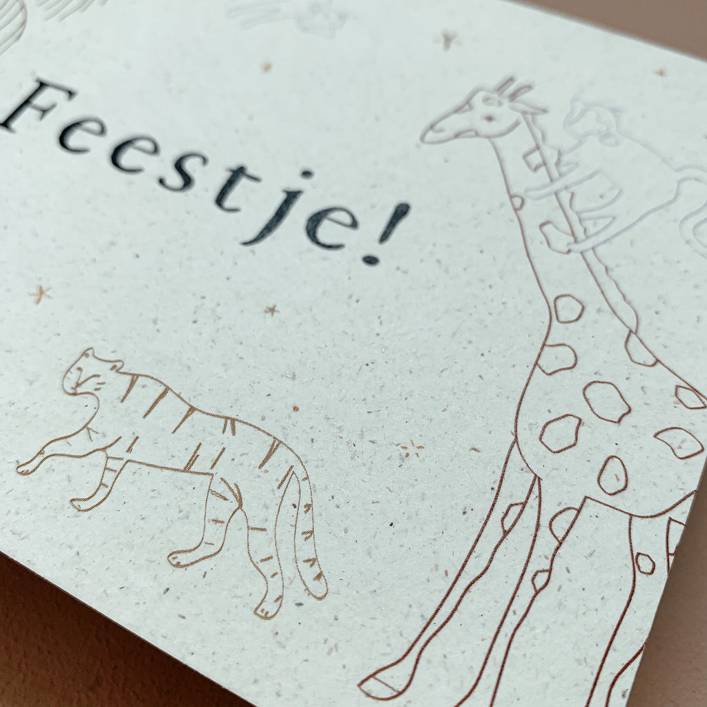 A set of ten kids' party invitations. At the back there is space to fill in all details. The cards are made of Viber paper. This is made from Elephantgrass that is grown and produced in The Netherlands.