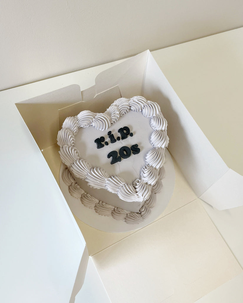 Our retro cakes have simple piping, you can choose between shape & fonts. If you want to doll it up more add some cherries on top. If you are looking for this style but a more dressed-up cake, check out our vintage cake.