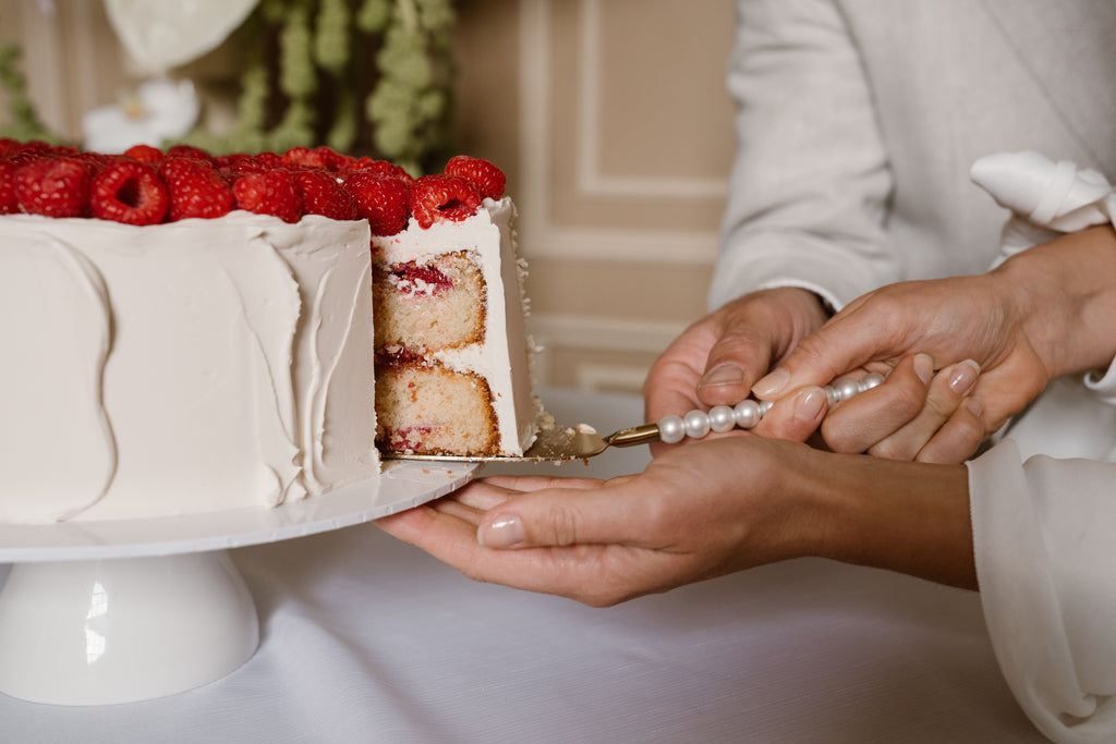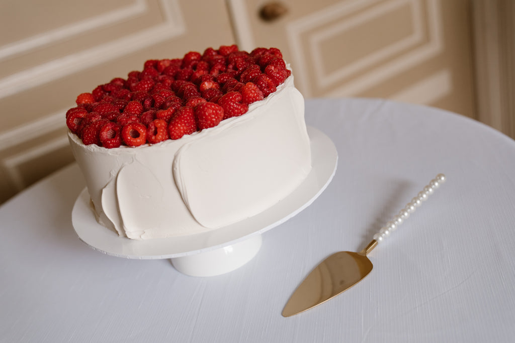Our raspberry cake is a perfect addition for your elegant wedding or other event. Go for a more casual look with the sides being undone and the raspberries randomly placed. Or a clean look with perfectly straight placed raspberries & sides.