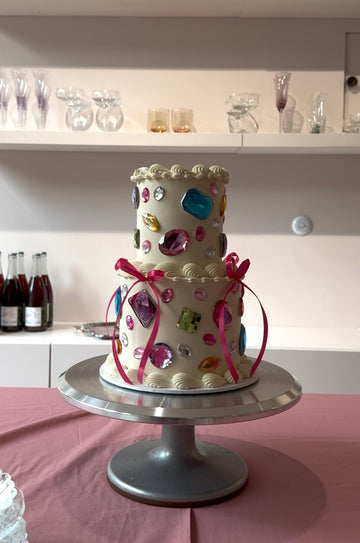 • The gems are NOT EDIBLE, so you have to remove them before cutting the cake.